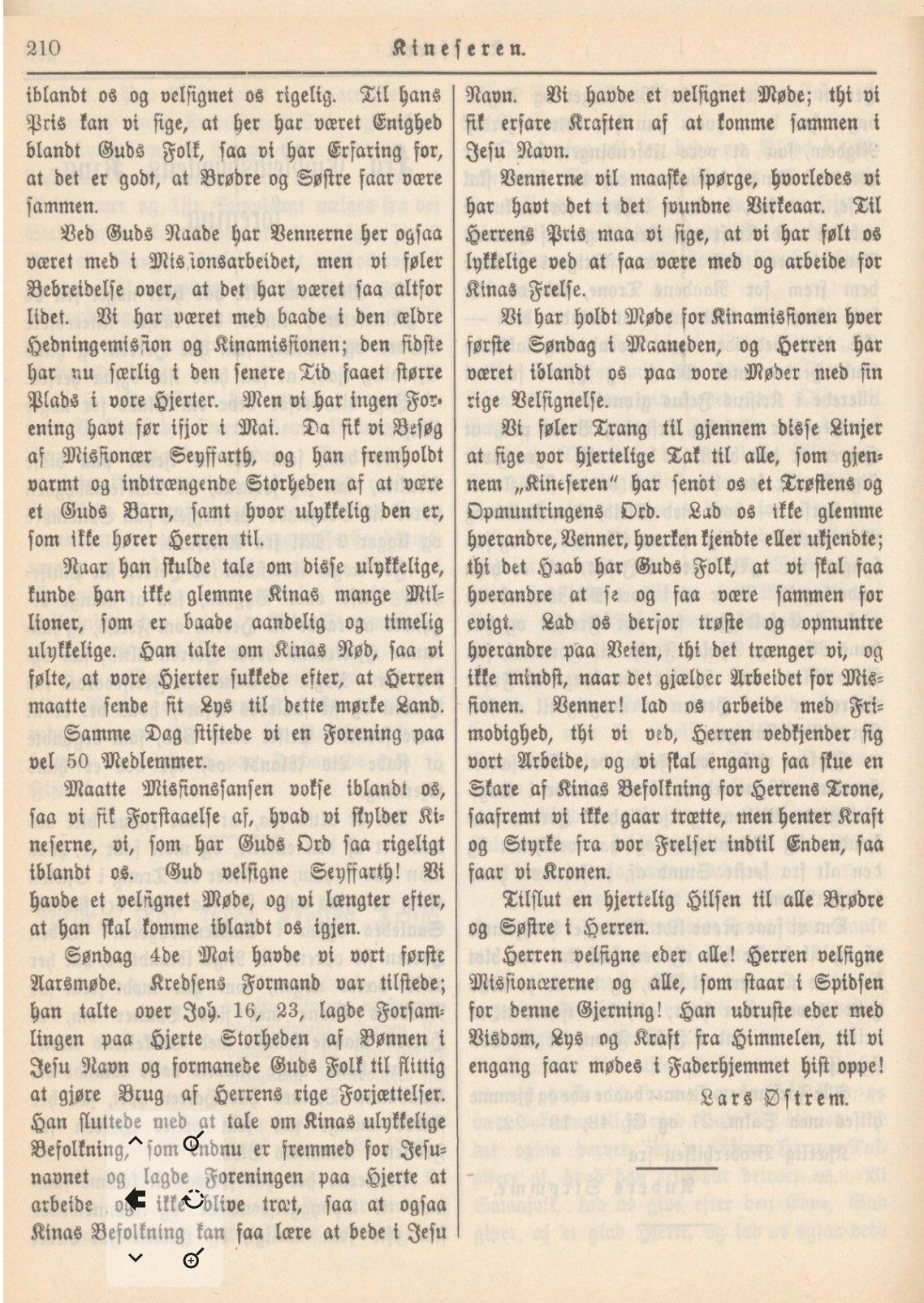 Ein av dei som visst vart mest råka var Lars Austrem i Larsgarden på Østrem. Han hadde fått dette bruket i gåve av far sin, Ole Knuts. Emblem, eller «Sjurs-Ole» som han vart kalla på folkemunne. Den gongen var det vanleg å skifte etternamn etter garden ein dreiv. Austrems-Lars gjekk enno lenger. Han endra like godt namnet til det nynorske Austrem også. Om han var målmann veit ein ikkje heilt, men Lars vart i alle fall sterkt involvert i kristenlivet i bygda, og lekpredikant attpå. Dei første møta vart halde i heimane, men etterkvart vart ein so mange at løene måtte takast i bruk om somrane før høyet skulle i hus. Det eldste misjonslaget i nyare tid, fekk namnet «Kinamisjonen» og vart soleis skipa i den største løa i Emblemsbygda på den tida, den nye Mattisløa på Østrem. Dette laget skulle seinare gå under namnet «gamlemisjonen». Ludvig Berntsen påMagerholm vart seinare ein ivrig pådrivar for dette misjonslaget. Der fekk misjonærane husrom, og huset vart testamentert med innbo til misjonssaka. Ein del hamna på Vestborg på Stranda.