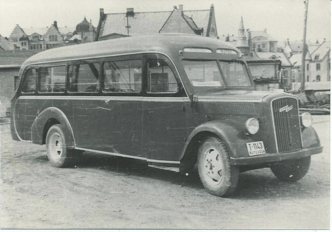 leige bussar fra andre. Krigsåra vart inga krevande tid, reint økonomisk. Etter krigen var det framleis rasjonering på det meste, bussar inkludert, men som gamal kunde hos Oscar Rørhuus greidde ein å få tak på eit Chevrolet chassis med påbygg frå T.Knudsen karosserifabrikk. Ein kjøpte også Volvo lastebilchassis, og sette på det gamle kombinertkarosseriet fra Opel Blitzen. Denne bilen fekk namnnet ”Stukasen”, fordi den fortsette direkte på dei tre inste bakkane når sjåføren ga full gass ned yste Puske- bakken. Det har visst ingen emblemsbuss greid før eller seinare.
